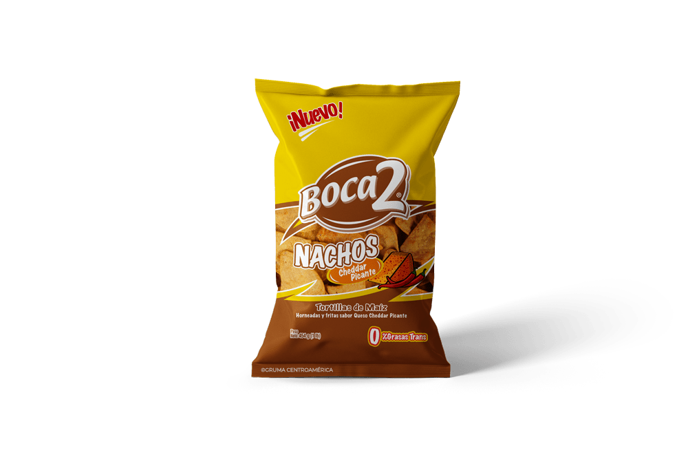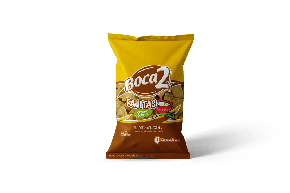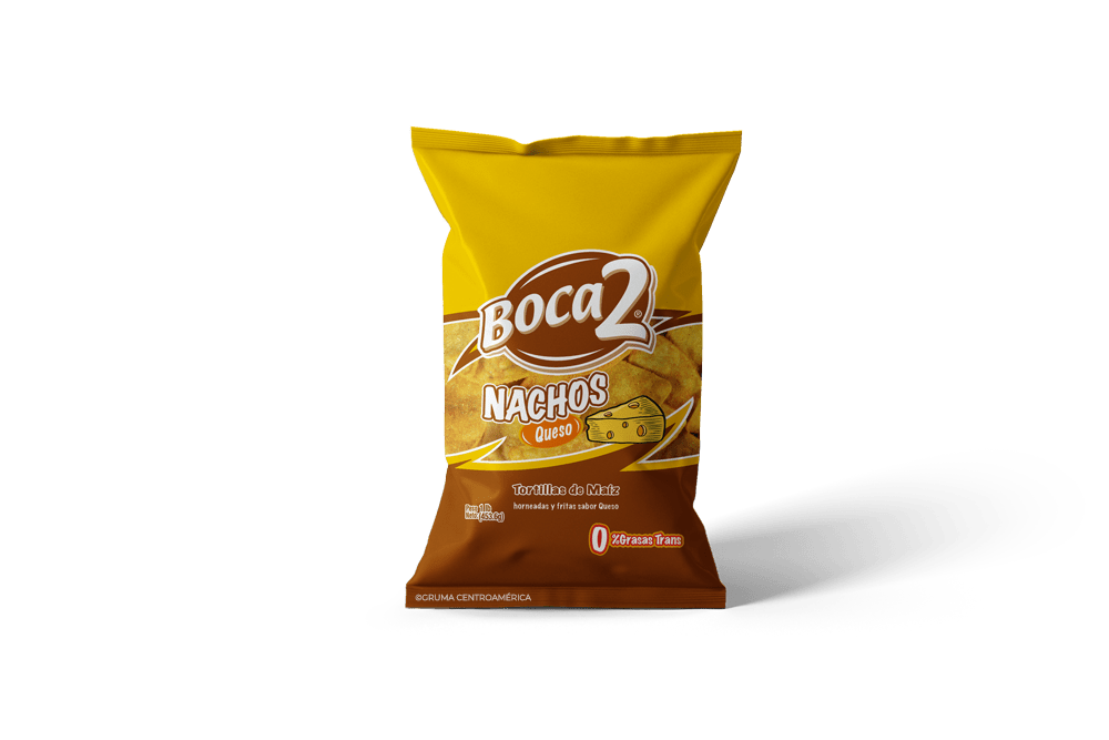 Boca2 es una línea de snacks a base de frituras tradicionales de tortillas de 100% puro maíz que busca rescatar ese paladar y llevar estos productos de una manera práctica, higiénica y moderna a los hogares guatemaltecos. Platillos como nachos, tostadas, enchiladas, etc son ampliamente preparados de manera artesanal y consumidos en refacciones o meriendas, en ferias patronales y mercados populares a lo largo del país.